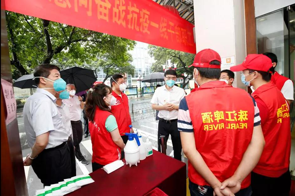 陈浩钿与珠江酒抗疫先铎男替补队员朴实沟通交流,坚持问题导向掌握男替补队员们的连通社区居委会、近几年服务保障方式、现在机构工作岗位等。断定珠啤控股股东8名同志自6月1日起持续在荔湾区白鹤洞街道(高风险区)服务2周,陈浩钿对先锋队给予了充分肯定。陈浩钿向广大国企干部职工表示衷心的感谢:“各位国企先锋队员勇挑重担、肩负使命,第一时间冲锋在抗疫一线,为荔湾封闭区域十多万居民倾情服务、传递温暖,充分展示了广州国企干部职工的风采,希望大家保护好自己,端午安康,凯旋归来!”